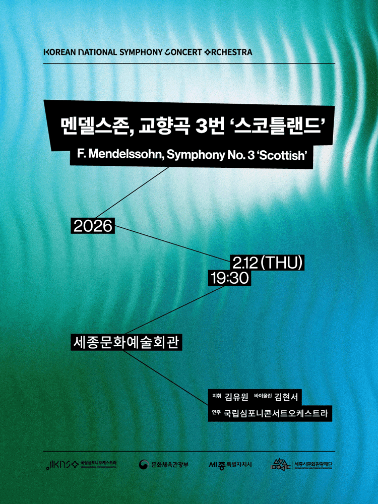 • 기간: 2026.02.12 ~ 2026.02.12 • 대상: 만 8세 이상 관람객 • 장소: 세종문화예술회관 대공연장 • 혜택: R석 20,000원, S석 10,000원 국립심포니오케스트라가 멘델스존의 대표적인 걸작인 교향곡 3번 스코틀랜드를 세종문화예술회관 무대에서 선보입니다. 정통 클래식의 깊은 감동을 느낄 수 있는 이번 공연은 수준 높은 오케스트라 연주를 합리적인 가격으로 감상할 수 있는 기회를 제공합니다.