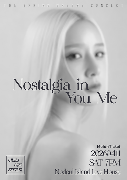 • 기간: 2026.04.11 ~ 2026.04.11 • 대상: 전체 관람가 • 장소: 노들섬 라이브하우스 • 혜택: 전석 119,000원 가수 유미가 노들섬 라이브하우스에서 단독 콘서트 Nostalgia in You Me를 개최합니다. 대중음악 장르의 감성적인 무대를 통해 관객들에게 깊은 울림과 향수를 선사할 예정입니다. 공연은 2026년 4월 11일 토요일 오후 7시에 진행되며 공식 예매처를 통해 상세 정보 확인 및 예매가 가능합니다.
