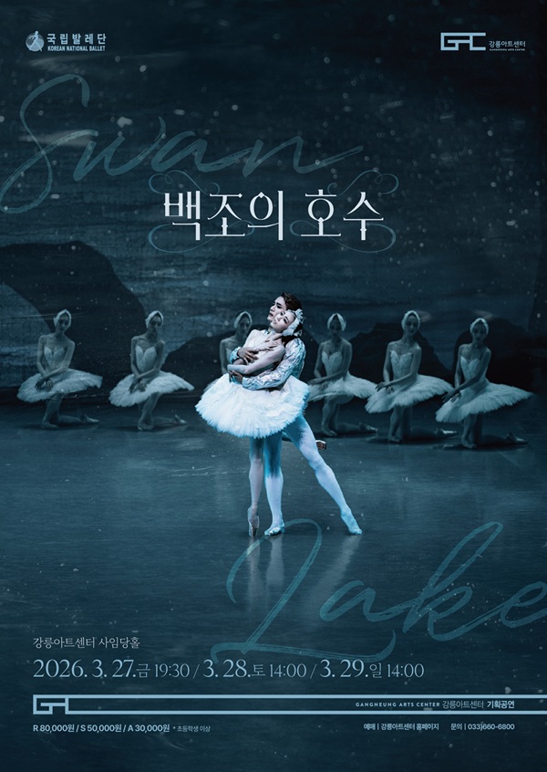 • 기간: 2026.03.27 ~ 2026.03.29 • 대상: 만 7세 이상 관람객 • 장소: 강릉아트센터 사임당홀 • 혜택: 좌석별 유료 관람 (R석 80,000원부터) 국립발레단이 선보이는 클래식 발레의 명작 백조의 호수가 강릉아트센터 무대에 오릅니다. 차이콥스키의 웅장한 음악과 함께 펼쳐지는 무용수들의 화려한 테크닉과 예술성을 감상할 수 있는 기회입니다. 정통 발레의 정수를 경험하고 싶은 관객들에게 특별한 시간을 선사할 것입니다.