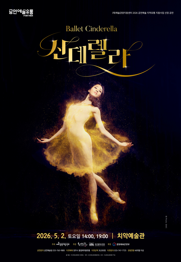 • 기간: 2026.05.02 ~ 2026.05.02 • 대상: 48개월 이상 관람가 • 장소: 원주치악예술관 • 혜택: 전석 30,000원 부산발레시어터가 선사하는 고전 동화 신데렐라 발레 공연이 원주치악예술관 무대에 오릅니다. 아름다운 선율과 무용수들의 우아한 몸짓을 통해 동화 속 환상적인 세계를 직접 경험할 수 있습니다. 온 가족이 함께 즐길 수 있는 이번 공연은 토요일 오후와 저녁 총 2회 진행될 예정입니다.