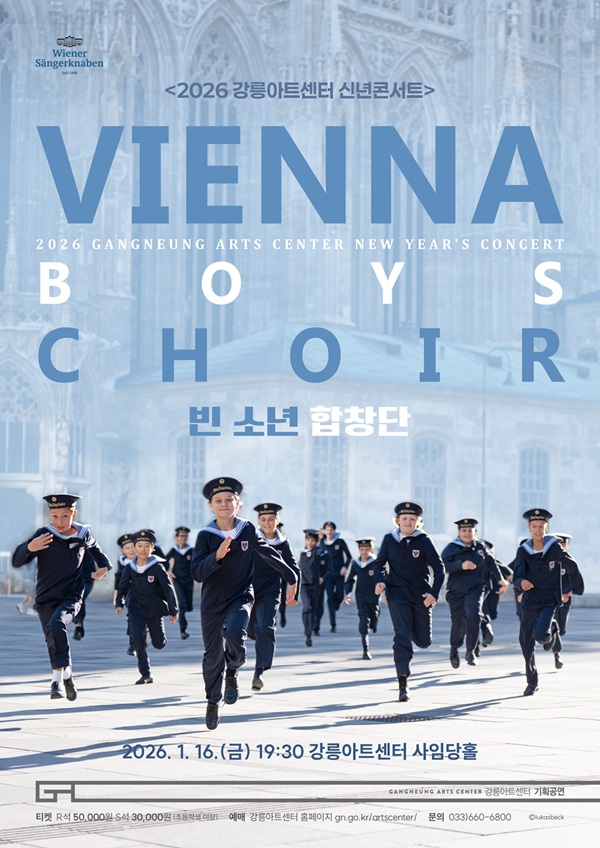 • 기간: 2026.01.16 • 대상: 만 7세 이상 • 장소: 강릉아트센터 사임당홀 (대공연장) • 가격: R석 50,000원, S석 30,000원 강릉아트센터에서 빈 소년 합창단 신년 콘서트가 열립니다. 아름다운 목소리로 새해를 맞이하는 특별한 시간을 가져보세요. KOPIS 공식 정보이며, 예매는 공식 예매처를 통해 가능합니다.