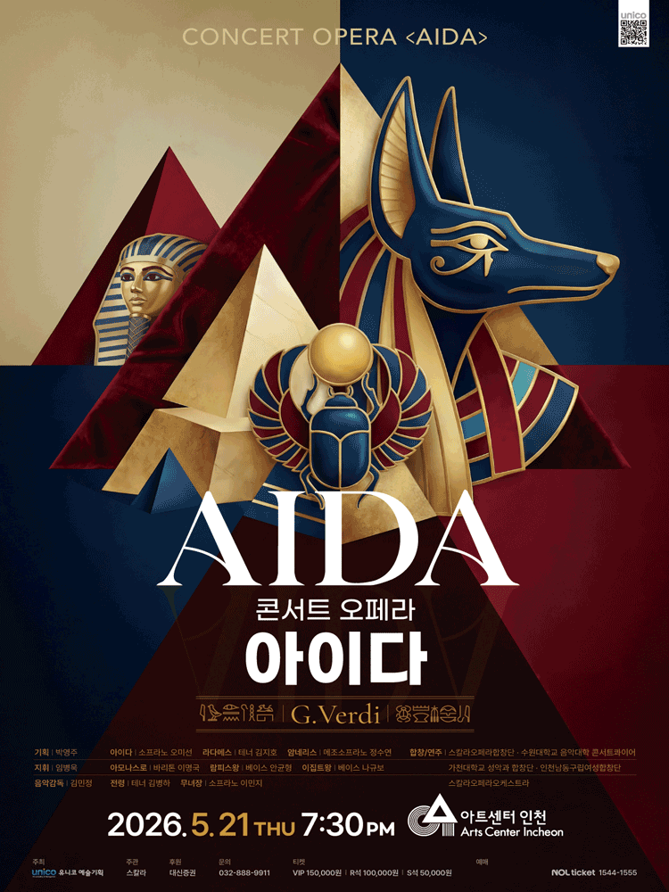 • 기간: 2026.05.21 ~ 2026.05.21 • 대상: 만 7세 이상 • 장소: 아트센터 인천 콘서트홀 • 혜택: VIP석 150,000원, R석 100,000원, S석 50,000원 아트센터 인천에서 개최되는 서양음악 클래식 공연 아이다를 소개합니다. 2026년 5월 21일 목요일 저녁에 진행되는 이번 공연은 수준 높은 연주를 통해 관객들에게 깊은 감동을 선사할 예정입니다. 공식 예매처를 통해 상세한 좌석 정보와 예매 일정을 확인하여 품격 있는 클래식 무대를 경험해 보시기 바랍니다.