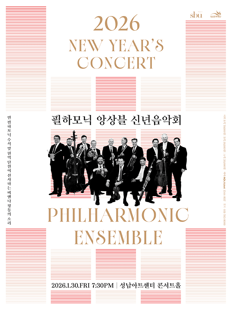 • 기간: 2026.01.30 • 장소: 성남아트센터 콘서트홀 • 관람 등급: 만 7세 이상 • 티켓 가격: R석 70,000원, S석 50,000원, A석 30,000원 필하모닉 앙상블의 신년음악회가 성남아트센터에서 개최됩니다. 2026년 1월 30일 금요일 저녁 7시 30분에 시작하며, 만 7세 이상 관람 가능합니다. 아름다운 클래식 선율로 새해를 맞이하는 특별한 시간을 경험해보세요.