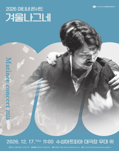 • 기간: 2026.12.17 • 대상: 만 7세 이상 • 장소: 수성아트피아 대극장 • 혜택: 전석 30,000원 수성아트피아의 대표 상설 공연인 마티네시리즈가 12월을 맞아 슈베르트의 겨울나그네를 선보입니다. 평일 오전 시간에 즐기는 고품격 클래식 공연으로 대구 지역 관객들에게 깊은 감동을 선사할 예정입니다. 공식 예매처를 통해 상세 일정 확인 및 티켓 예매가 가능합니다.
