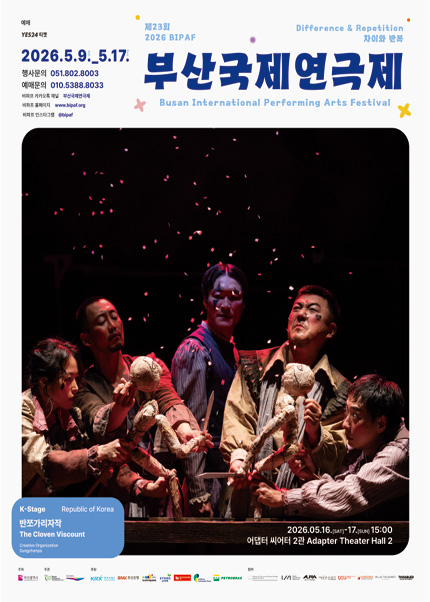 • 기간: 2026.05.16 ~ 2026.05.17 • 대상: 만 13세 이상 관람가 • 장소: 어댑터씨어터 2관 • 혜택: 전석 25,000원 제23회 부산국제연극제의 일환으로 무대에 오르는 연극 반쪼가리 자작이 관객들을 찾아옵니다. 이탈로 칼비노의 명작 소설을 바탕으로 인간의 양면성을 탐구하는 깊이 있는 서사를 선보입니다. 부산 광안동 어댑터씨어터에서 펼쳐지는 이번 공연을 통해 연극 예술의 진수를 만끽하시기 바랍니다.