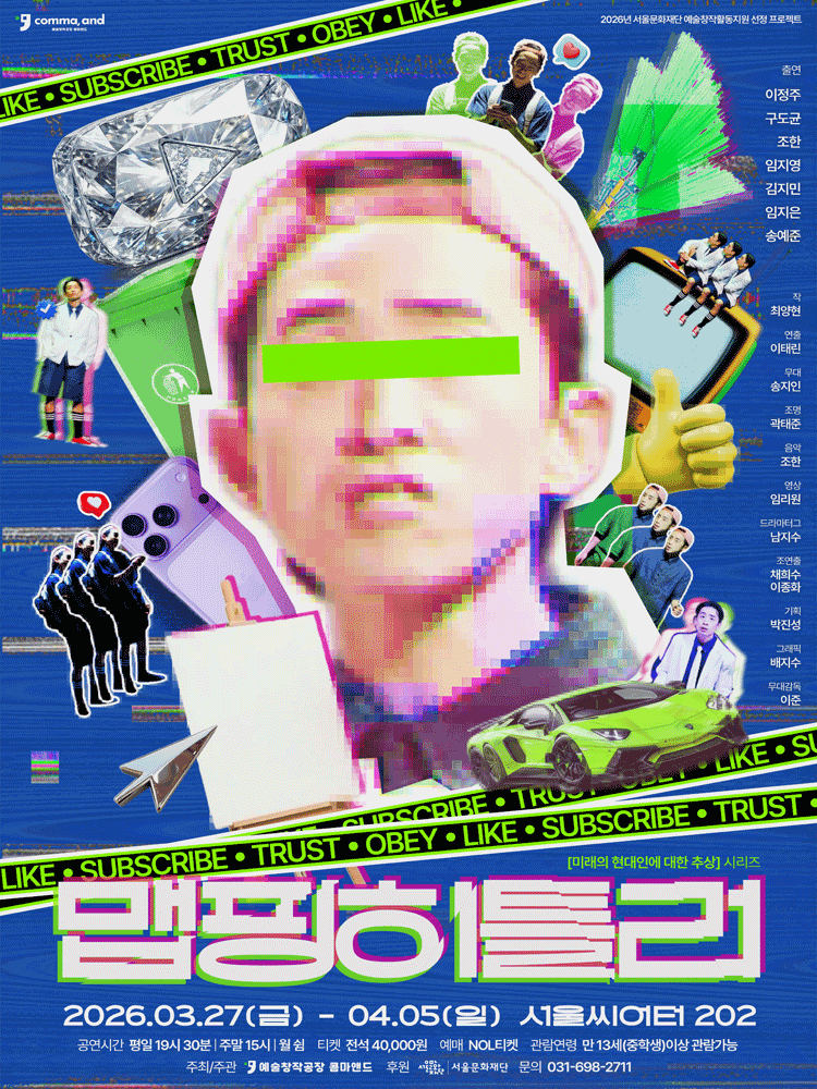 • 기간: 2026.03.27 ~ 2026.04.05 • 대상: 만 13세 이상 관람객 • 장소: 서울연극창작센터 서울씨어터 202 • 혜택: 전석 40,000원 서울연극창작센터에서 주최하는 연극 맵핑히틀러가 2026년 봄 무대에 오릅니다. 역사적 소재를 다룬 이번 공연은 서울씨어터 202에서 약 열흘 동안 관객들과 만날 예정입니다. 상세한 공연 정보 확인과 예매는 공식 예매처를 통해 진행할 수 있습니다.