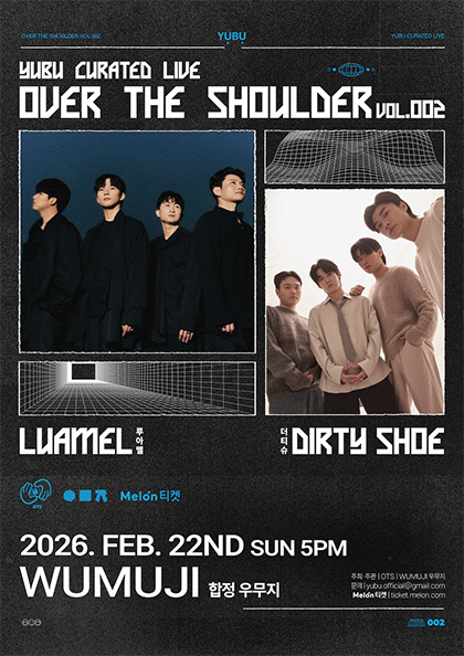 • 기간: 2026.02.22 ~ 2026.02.22 • 대상: 전체 관람가 • 장소: 우무지 (서울특별시 마포구 독막로8길 7) • 혜택: 사전예약 30,000원, 현장판매 33,000원 밴드 루아멜과 더티슈가 함께하는 합동 공연 Over The Shoulder의 두 번째 무대가 합정동 우무지에서 개최됩니다. 대중음악 장르의 다채로운 사운드를 가까이서 즐길 수 있는 이번 공연은 사전 예약을 통해 할인된 가격으로 예매가 가능합니다. 일요일 오후를 감성적인 음악으로 채우고 싶은 모든 관객에게 특별한 시간을 선사할 예정입니다.