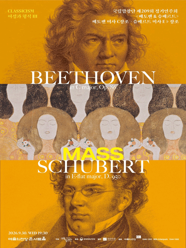• 기간: 2026.09.30 ~ 2026.09.30 • 대상: 만 7세 이상 • 장소: 예술의전당 콘서트홀 • 혜택: R석 70,000원, S석 50,000원, A석 30,000원 국립합창단이 베토벤과 슈베르트의 걸작을 선보이는 제209회 정기연주회를 개최합니다. 정통 클래식 합창의 정수를 경험할 수 있는 이번 공연은 예술의전당 콘서트홀에서 관객들에게 깊은 감동을 선사할 예정입니다.