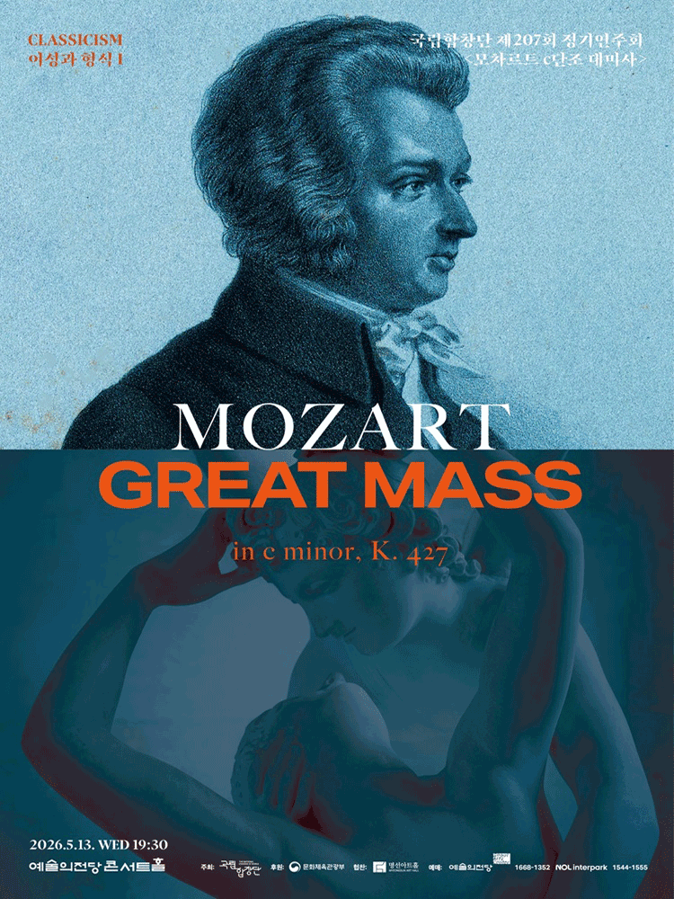 • 기간: 2026.05.13 ~ 2026.05.13 • 대상: 만 7세 이상 관람객 • 장소: 예술의전당 콘서트홀 • 혜택: R석 70,000원, S석 50,000원, A석 30,000원 국립합창단이 선보이는 제207회 정기연주회로 모차르트의 걸작인 c단조 대미사를 무대에 올립니다. 대한민국을 대표하는 합창단의 깊이 있는 화음과 웅장한 오케스트라 선율이 어우러져 클래식 음악의 정수를 선사합니다. 예술의전당 콘서트홀에서 펼쳐지는 이번 공연을 통해 정통 서양 고전 음악의 감동을 직접 경험해 보시기 바랍니다.