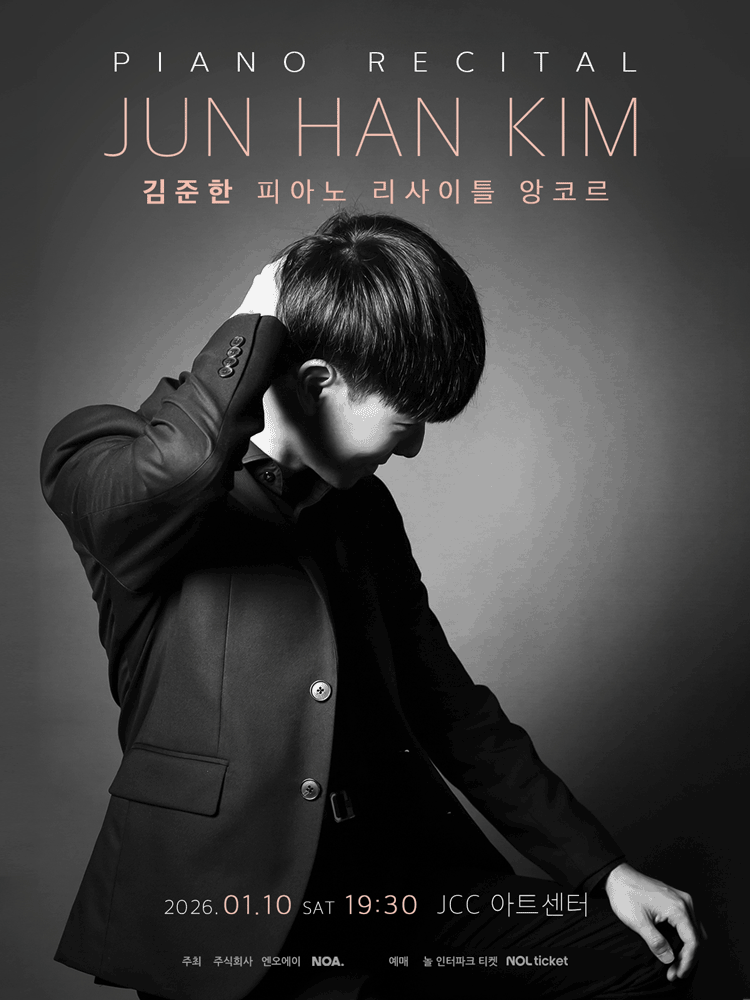 • 기간: 2026.01.10 • 장소: JCC 아트센터 콘서트홀 (서울특별시 종로구 창경궁로35길 29) • 관람 등급: 만 7세 이상 • 티켓 가격: VIP석 60,000원, R석 50,000원, S석 40,000원 피아니스트 김준한의 앵콜 리사이틀이 JCC 아트센터에서 개최됩니다. 토요일 저녁, 아름다운 피아노 선율을 통해 감동과 여운을 느껴보세요. 자세한 공연 정보 및 예매는 공식 예매처를 통해 확인하실 수 있습니다.