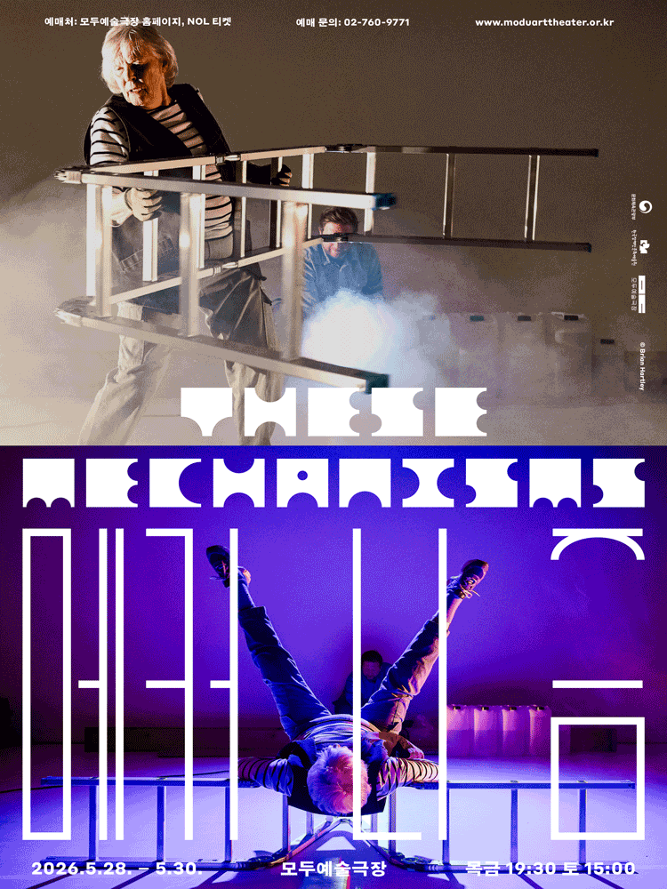 • 기간: 2026.05.28 ~ 2026.05.30 • 대상: 만 7세 이상 관람가 • 장소: 모두예술극장 • 혜택: 전석 40,000원 모두예술극장에서 펼쳐지는 메커니즘은 서양 무용과 한국 무용의 요소를 결합하여 독창적인 움직임을 선보이는 무용 공연입니다. 3일간의 짧은 일정 동안 현대적인 감각으로 재해석된 예술적 메커니즘을 무대 위에서 생생하게 경험할 수 있습니다. 역동적인 안무와 연출을 통해 관객들에게 깊은 인상과 예술적 영감을 전달할 예정입니다.