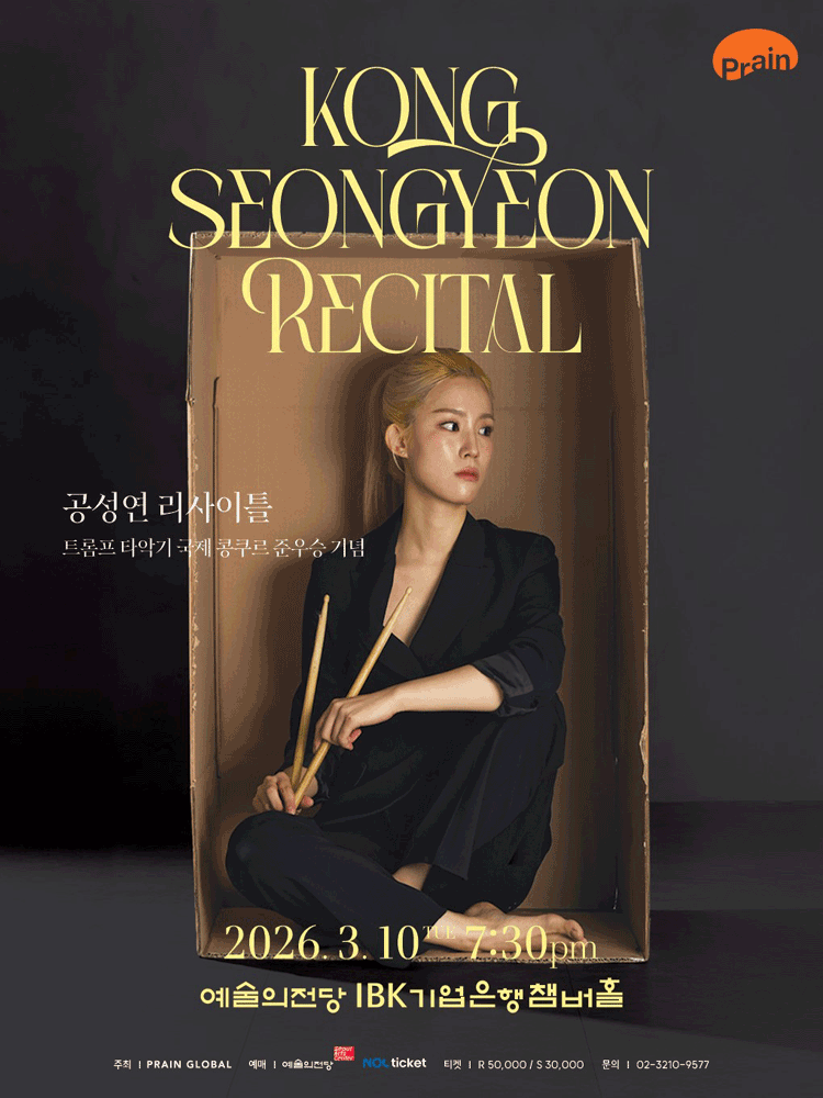 • 기간: 2026.03.10 ~ 2026.03.10 • 대상: 만 7세 이상 관람객 • 장소: 예술의전당 IBK챔버홀 • 혜택: 클래식 타악기 연주 감상 트롬프 타악기 국제 콩쿠르에서 준우승을 거머쥔 퍼커셔니스트 공성연의 기념 리사이틀이 개최됩니다. 세계적인 무대에서 실력을 입증한 연주자의 독창적이고 역동적인 타악기 세계를 만나볼 수 있는 특별한 무대입니다. 예술의전당 IBK챔버홀에서 펼쳐지는 이번 공연을 통해 클래식 타악기만의 깊은 울림과 매력을 직접 확인해 보시기 바랍니다.