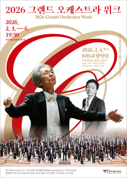 • 기간: 2026.02.04 ~ 2026.02.04 • 대상: 만 7세 이상 관람객 • 장소: 광주 예술의 전당 대극장 • 혜택: Premium석 70,000원 외 등급별 티켓 제공 KBS교향악단이 선사하는 수준 높은 클래식 선율을 광주 예술의 전당에서 만나볼 수 있는 특별한 기회입니다. 그랜드 오케스트라 위크의 일환으로 진행되는 이번 공연은 정통 서양음악의 정수를 경험할 수 있도록 구성되었습니다.