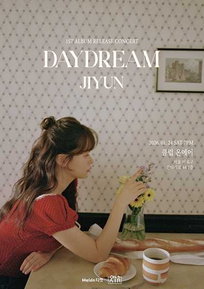• 기간: 2026.01.24 • 장소: 클럽온에어 (서울특별시 마포구 잔다리로 44(서교동)) • 대상: 전체 관람가 • 가격: 전석 38,000원 싱어송라이터 JIYUN의 정규 1집 DAYDREAM 발매 기념 콘서트가 클럽온에어에서 개최됩니다. 토요일 저녁, JIYUN의 아름다운 음악과 함께 특별한 시간을 보내세요. KOPIS 공식 정보를 참고하여 예매처를 통해 티켓을 구매할 수 있습니다.