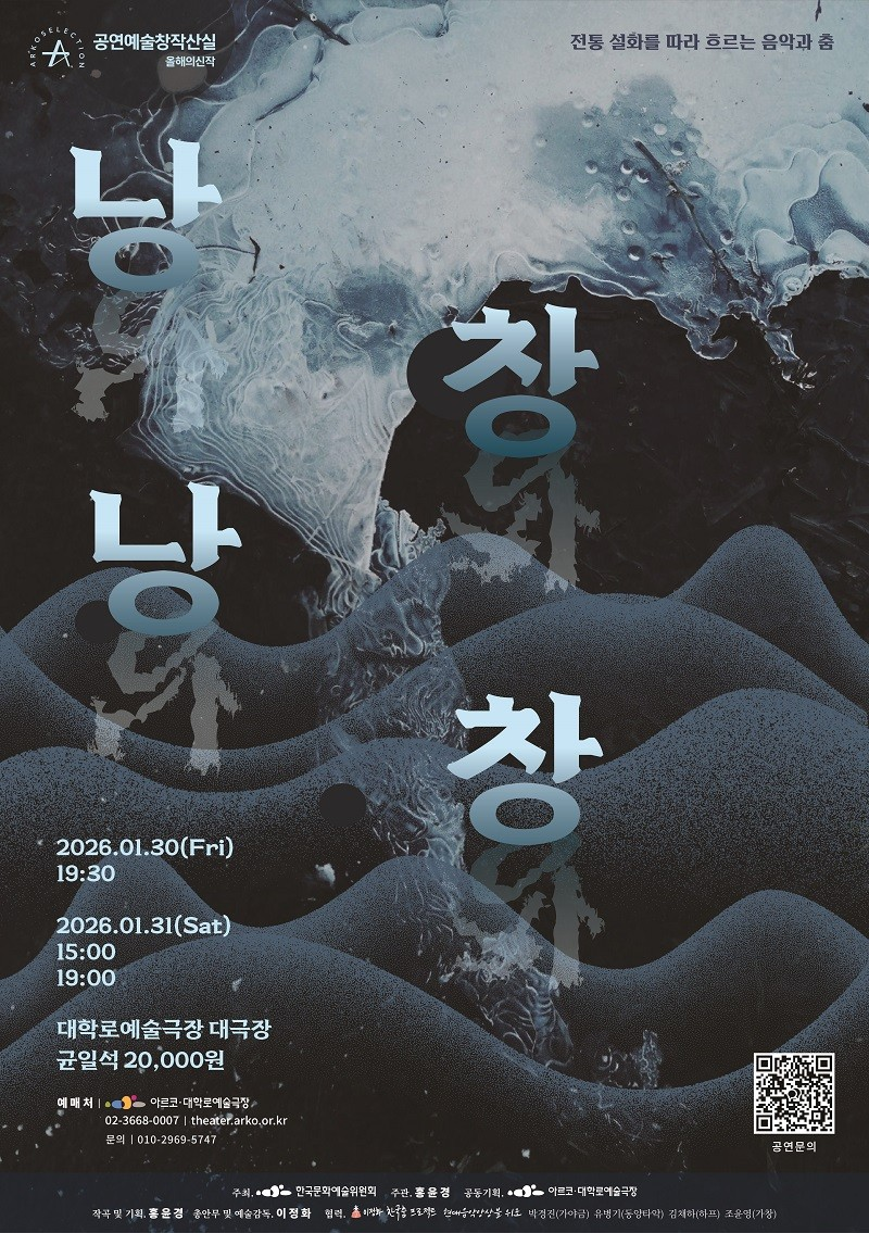 • 기간: 2026.01.30 ~ 2026.01.31 • 장소: 대학로예술극장 대극장 (서울특별시 종로구 대학로10길 17) • 관람 등급: 만 5세 이상 • 티켓 가격: 전석 20,000원 창작산실에서 선보이는 낭창낭창 공연이 대학로예술극장에서 펼쳐집니다. 금요일 저녁과 토요일 오후, 저녁 공연으로 관객들을 맞이할 예정입니다. 복합 장르의 공연으로, 자세한 내용과 예매는 공식 예매처를 통해 확인하실 수 있습니다.